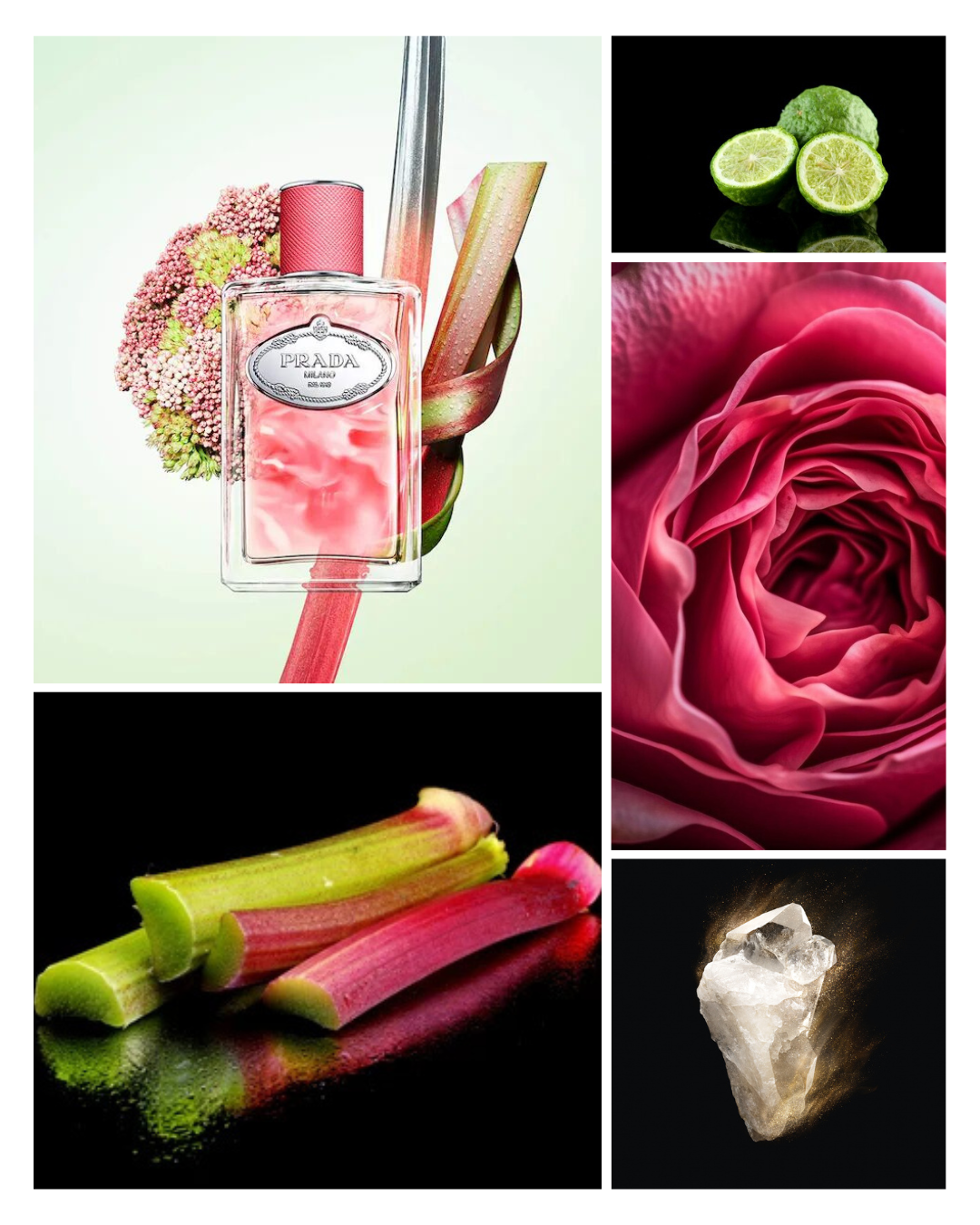 Infusée de l'"esprit d’infusion" de Prada, la Rhubarbe représente la contradiction par excellence au cœur de Prada, étant à la fois incisivement fraîche et subtile, délicate et addictive, d'une manière qui vous ressemble instantanément.